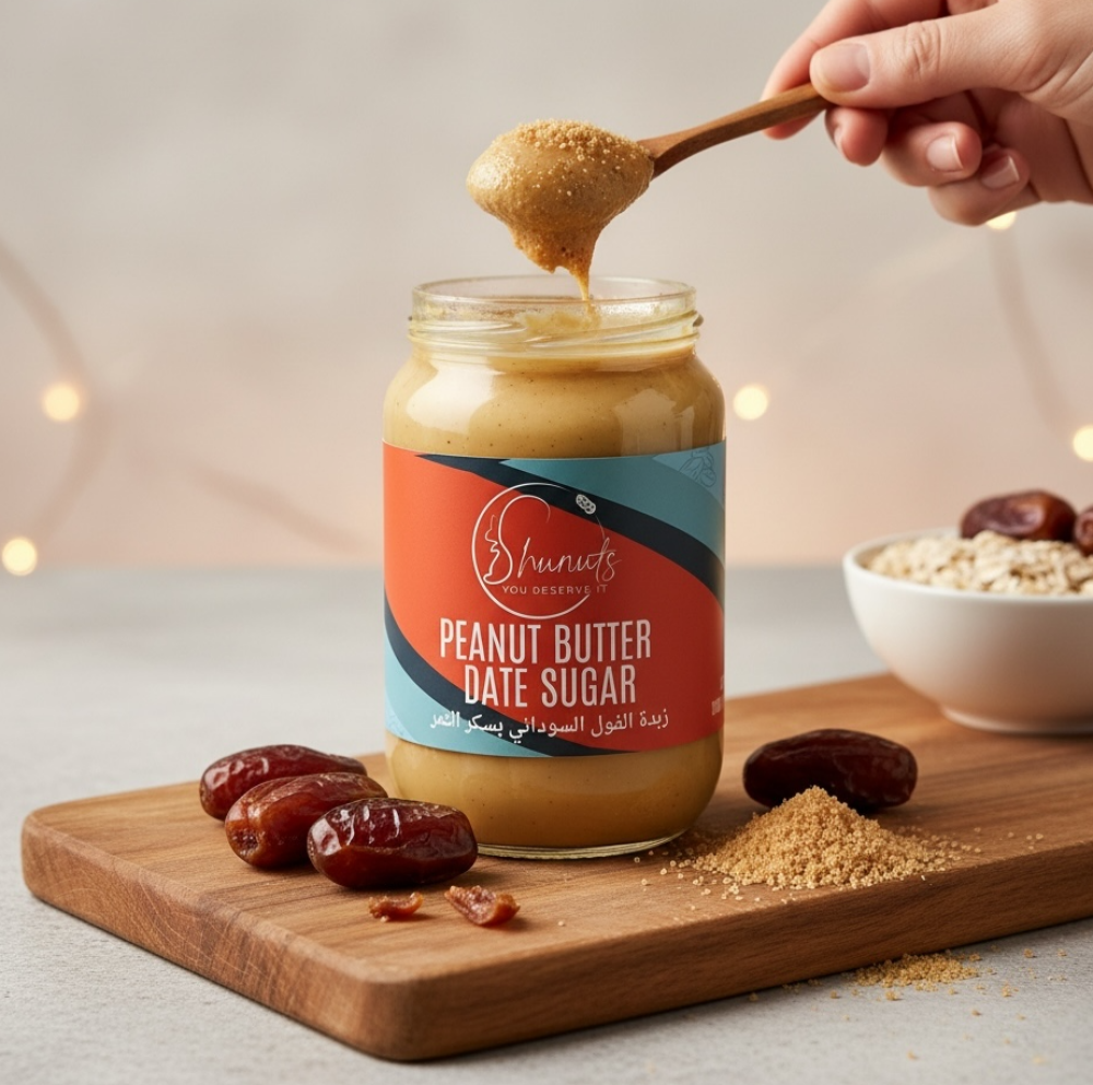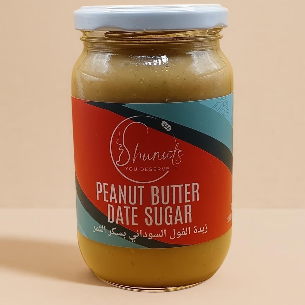 زبدة الفول السوداني بسكر التمر الطبيعية 100% من شونتس معدة بكل حب, خالية من الزيوت المهدرجة والمواد الحافظة والسكر المكرر,